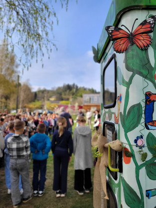 Die Schülerinnen und Schüler der inzwischen 4A-Klasse waren sofort begeistert. Gemeinsam sammelten sie Vorschläge, planten die Umsetzung und machten sich schließlich mit viel Freude und Kreativität ans Werk. Die alte Telefonzelle wurde gründlich gereinigt, neu gestaltet und schließlich künstlerisch bemalt. Liebevolle Details zeigen, wie viel Kreativität in den Kindern steckt.