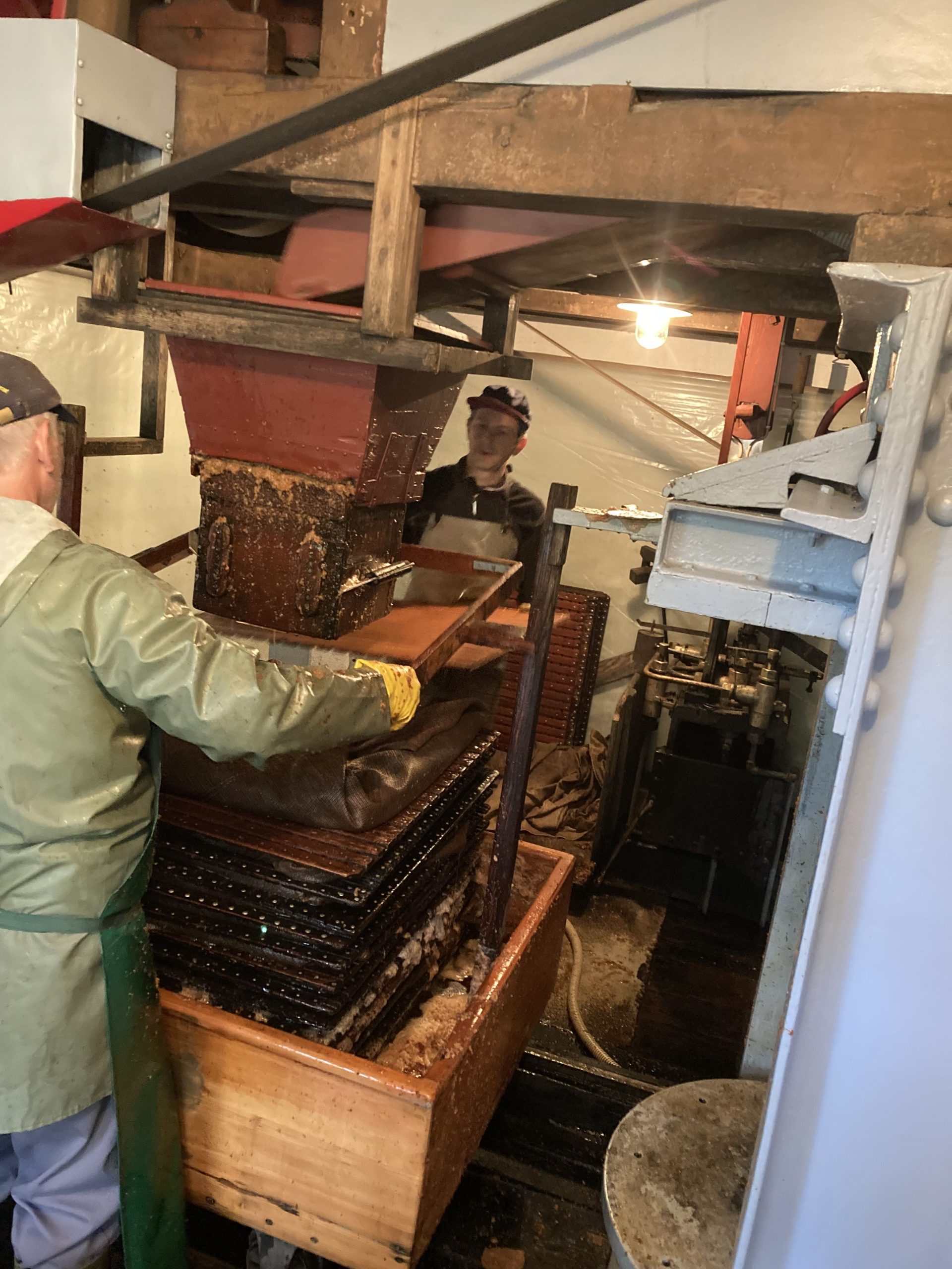 Nach einer gemeinsamen Kutschenfahrt zum Hof lernten sie Schritt für Schritt die Herstellung des gesunden Obstsaftes von der Anlieferung der Äpfel bis zur Abfüllung in Behälter kennen.