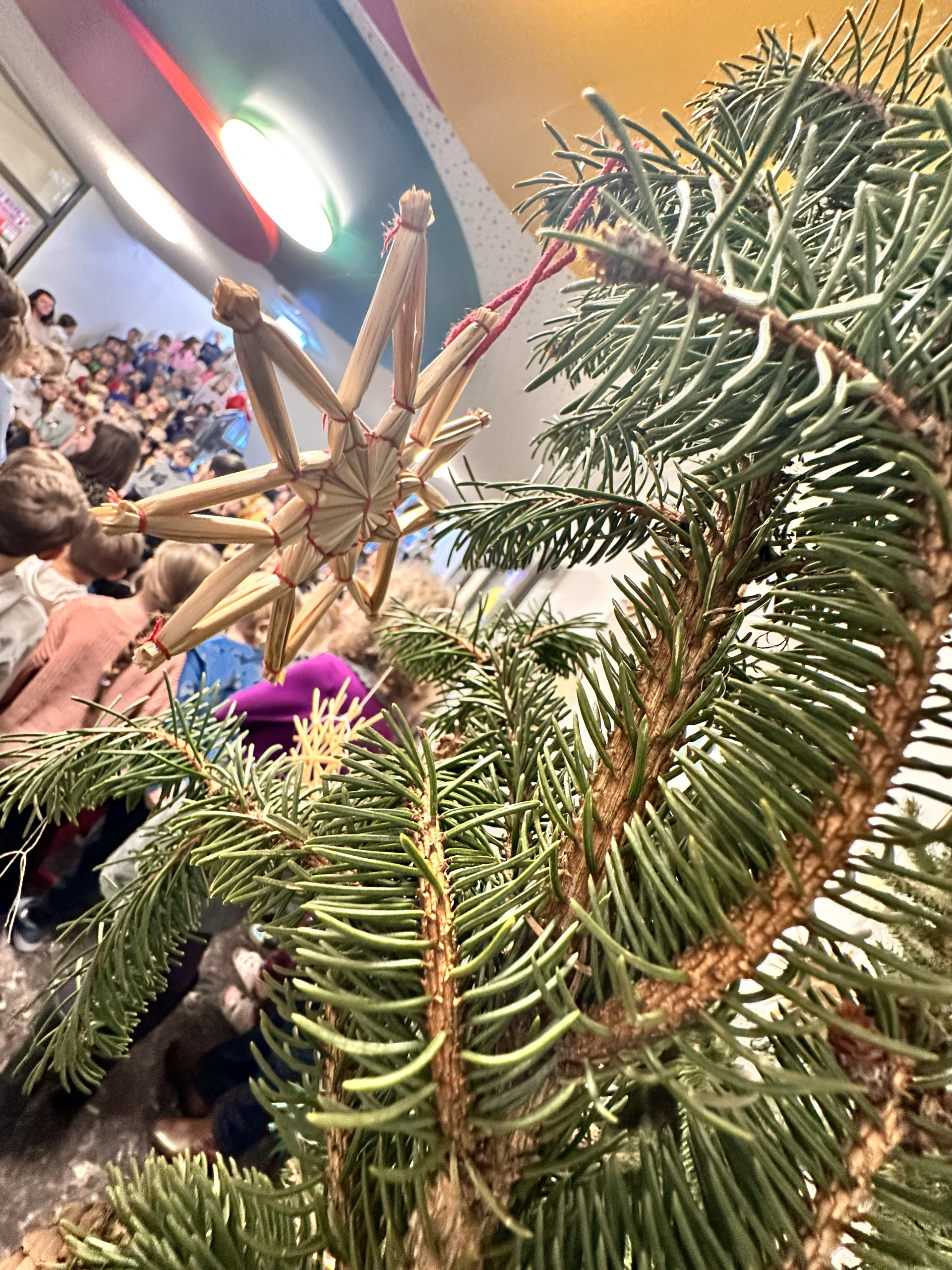 Alle Schulkinder und Lehrpersonen sind versammelt und feiern gemeinsam den Beginn des heurigen Advents mit Liedern, Gedichten und besinnlichen Texten.