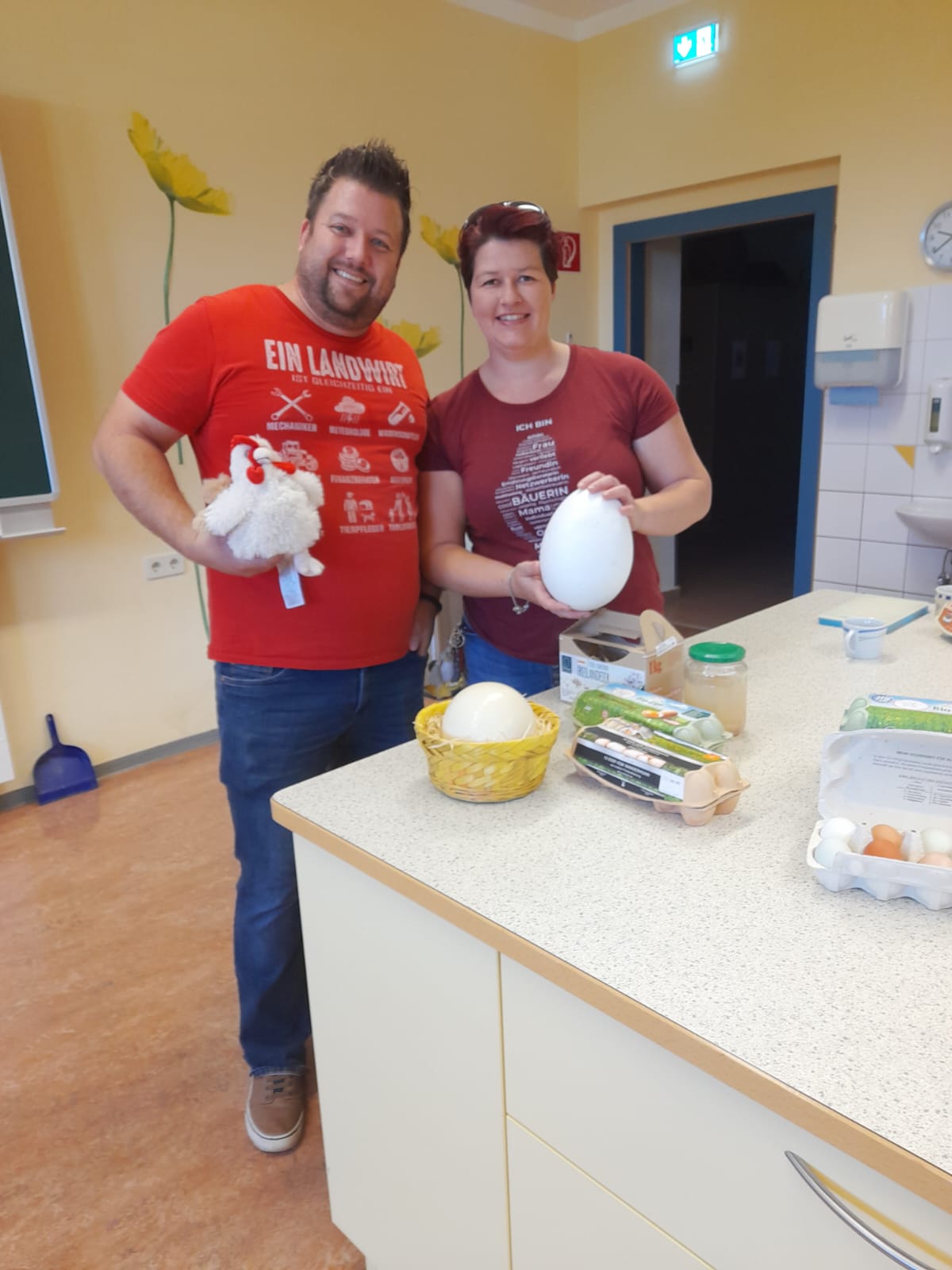 Am Welternährungstag besuchten die Seminarbäuerin Simone und der Seminarbauer Florian Jakopitsch aus Tigring die 2B-Klasse. Dieses Mal drehte sich alles um das Ei.
