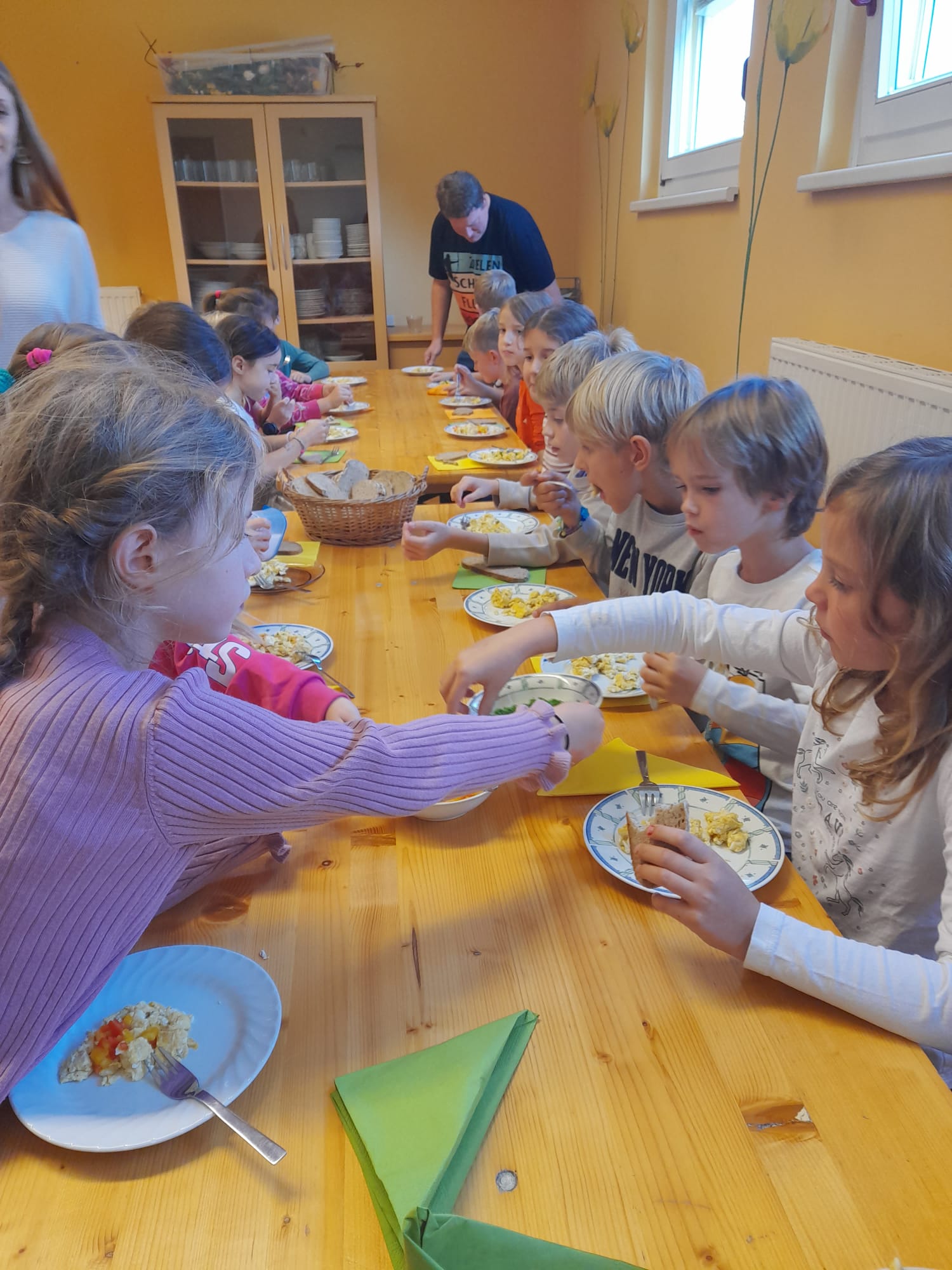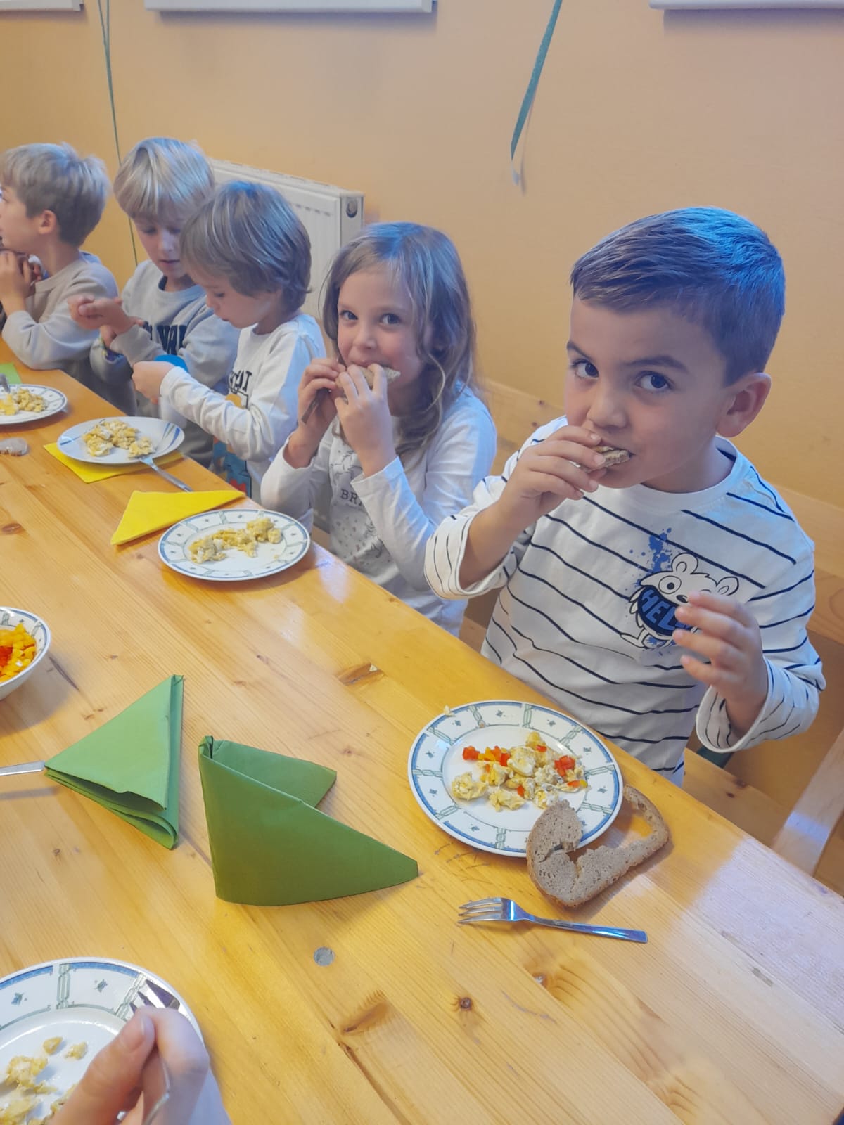 Der krönende Abschluss war die Zubereitung einer Eierspeise, die von allen Kindern mit Genuss verschlungen wurde!