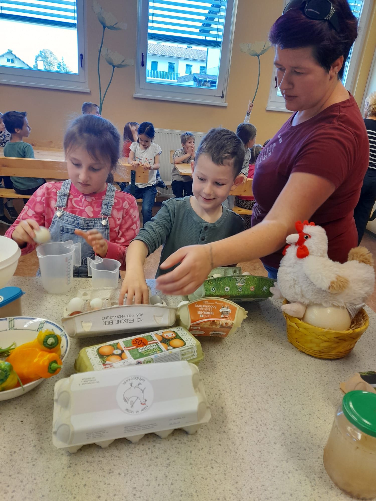 Die Mädchen und Buben erfuhren Wissenswertes über die Artenvielfalt der Hühner und den Aufbau eines Eies.